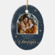 Modern Winter Snowflakes Photo Navy Blue Christmas Ceramic Ornament