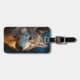 Cool luggage tag with a close-up of a wolf at sunrise, night sky in background. This can be cusotmized with a name/custom text along the right side.