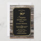 A rustic gold bordered wood surprise 90th birthday party invitation with gold text on a black background.