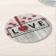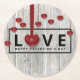 Modern Wood Valentine's Day Rustic LOVE Red Hearts Round Paper Coaster
