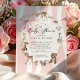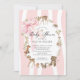Celebrate the upcoming arrival of your little one with our charming baby shower invitation, featuring adorable woodland animals surrounded with a modern pink stripe background. The trendy pink coquette bow add a touch of elegance and whimsy, making this invitation perfect for a woodland-themed celebration. Invite your loved ones to share in the joy of this special occasion with a design that captures the sweetness of new beginnings.