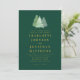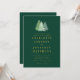 Modern simple woodland forest Wedding Invitation with Watercolor evergreen pine & fir Trees and elegant Modern gold Typography on dark emerald green background