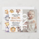 Cute modern wild one birthday invitation featuring various jungle animals, dots and the word one. Great for a safari wild one themed first birthday party.