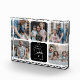 Modern Glass Photo Block Display for Daddy! Design features a photo collage consisting of 5 curved edged square pictures and a coloured block that can be changed to any colour with the text 'The World's Best Daddy', a cute little white heart and name/s.