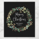 Modern Wreath and Script | Merry Christmas Black Wine Label