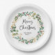 Modern Wreath and Script | Merry Christmas Paper Plate