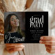 Invite friends and family to join in the celebration and create the perfect grad party invite with this Yay Grad typography and photo template. This high-quality design is easy to customize to be uniquely yours! This photo graduation party invitation features a photo of the grad with white fancy lettering that reads 'Yay Grad'. The party template is on a black background that can be changed to any colour. Let's celebrate the graduate!