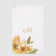 Modern Yellow and Copper Floral Monogram Golf Towel