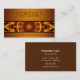 Stylish modern business card with piece of a yellow, red and brown mandala showing on the front with a brown background. Click customize to have more control over font choices and the use of text space.