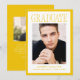 Bright and celebratory, this Modern Yellow Frame Photo Graduation Announcement features a bold yellow border that adds warmth and confident contrast to the clean, structured layout. “Graduate” is displayed in refined serif lettering at the top, drawing the eye above the graduate’s vertical photo centered within the design. The graduate’s name, school, and graduation year appear below in a crisp, balanced arrangement that keeps the focus on their accomplishment. On the back, a horizontal photo is paired with space for personalized text, making it perfect for sharing graduation party details, future plans, or a heartfelt thank you message. Designed for both high school and college graduates, this modern photo graduation card offers a fresh yet timeless way to honor this important milestone.
