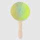 Bright yellow, orange & light blue geometric gradation with slight marbled effect.