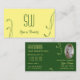 Modern Yellow Green Ornate with Monogram and Photo Business Card