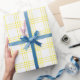 A wrapping paper designed with a modern yellow plaid pattern on white in large size. Customize the white background among other options.