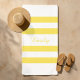 Personalized Modern Yellow Stripes Pattern Name Beach Towel.