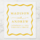 Modern Yellow Wavy Frame Wedding Wine Label