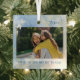 Modern yet Elegant Blue Gold Swirl pattern with Dragonflies Christmas holiday ornaments for your favourite photo on the front along with the year,
