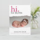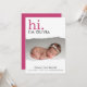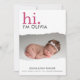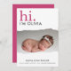 Baby Birth Announcement | Peacock Hot Pink colorway - Minimalistic and clean - Hi My Name is __ Your Baby's Photo in a shadowed torn paper effect with details on the bottom.
