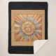 Warm tones of tan, orange, and burnt amber making up this beautiful, peaceful-looking sun add a sense of tranquillity upon this cozy, large, 60 x 80 inch sherpa blanket. With arrows facing the cardinal directions and feathery rays on the sun, this Boho inspired design is accentuated by a modern and unexpected complimenting and contrasting black brick border. Adds a Zen atmosphere and modern pops of colour to your living room, office sofa, meditation area, or bedroom. Available in small, medium, and large.