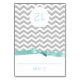 DIY folding modern zig zag and aqua bow printed seating place card in grey and aqua to compliment our invitation set, can be personalized and ordered individually. All parts of this card are printed there is no real ribbon attached.