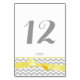 Modern chevron or zigzag pattern in grey and white with yellow bow printed table number card to compliment our invitation set, can be personalized and ordered individually. All parts of this card are printed, there is no real ribbon attached.