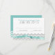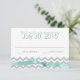 Grey zig zag or cheveron style pattern with a pretty aqua coloured bow wedding reply card to compliment our invitation.