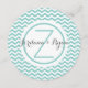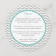 Grey and Aqua zig zag or chevron pattern design small round menu. Personalize text as preferred and add the bride and groom's name or monogram on back.