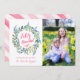 Tarjeta moderna con la fotografía. La tarjeta tiene una corona de flores pintadas en acuarela y el lugar de texto y una foto.