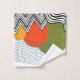 Cet ensemble de serviettes a un design moderne du milieu du siècle de lignes courbes et zigzag en noir, des cercles en jaune, orange et vert, et un rectangle fait de lignes turquoises pointillées. Si vous voulez le même design avec des couleurs différentes, envoyez-moi un message.
