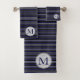 Moderne Bleu foncé Bleu noir rayures Monogramme