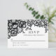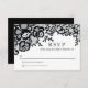 Carte RSVP de mariage formelle en dentelle noire chic moderne | Suite de papeterie Mariage en dentelle noire | Elégante carte de réponse mariage noir et blanc avec fleurs noires et feuilles dans un style dentelle chic. Style de police formel sophistiqué, avec typographie classique chic. Carte RSVP de mariage branchée. ***VEUILLEZ NOTER : Cette carte n'est pas faite de dentelle réelle. Si vous modifiez la police ou la taille de la police, cela peut modifier la façon dont votre papeterie imprime. Il imprime la façon dont vous la voyez sur votre écran. Je ne verrai pas votre carte une fois que vous l'aurez commandée, et Zazzle ne modifiera rien (typos, alignement, etc.).