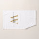 Serviette de main personnalisée moderne et élégante avec monogramme initial en or et blanc, de style féminin et chic. Caractérisée par un prénom (ou nom de famille) dans un style de lettrage manuscrit élégant avec une typographie à queue de style swash (ou calligraphie) avec monogramme initial en or et noir sur fond blanc. Cadeau de pendaison de crémaillère féminin et élégant, également pour un anniversaire, une fête des 16 ans, une soirée bachelorette, un enterrement de vie de jeune fille, un mariage, la fête des mères, un anniversaire de mariage et pour une fête de remise de diplôme. C'est pour la fille qui aime les choses élégantes et stylées.