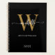 Planificateur personnalisé moderne, féminin et élégant, à l'encre noire et dorée avec monogramme, initiale, nom et signature en script personnalisé pour 2023 ou toute autre année. Ce design présente votre prénom dans une jolie typographie à lettres manuscrites avec fioritures (ou calligraphie), monogramme initial, nom complet (ou nom de famille) et année en doré et blanc sur fond noir. Facile à personnaliser. Cadeau féminin idéal pour un anniversaire, une fête de fiançailles, la fête des mères, un mariage, une entreprise, un sweet 16, la rentrée scolaire, la remise de diplôme, le travail professionnel et pour quiconque aime les choses minimalistes et épurées.