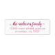 Moderne Elegant Classic Burgundy Maroon Rouge Script Famille Étiquette de adresse Vous pouvez facilement customiser la couleur du texte avec l'outil "Personnaliser" ou vous n'avez pas besoin de me contacter.