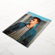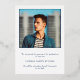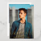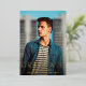 Carte de faire-part moderne de graduation avec un design simple et masculin avec "Graduate" en gros caractères gras avec le nom du diplômé, l'année et le nom de l'école sur votre photo verticale de fond de sang préféré. Tout le texte sur le devant est en papier or. Le côté arrière a une photo carré avec votre message personnel ci-dessous dans une police marine bleu serif sur un arrière - plan blanc.