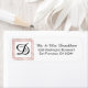 Élégantes étiquettes d'adresse de retour en lettres blanches et noires et double faux carré cadre en feuille rose or. Lettre monogramme initial. Ajoutez-les à vos enveloppes pour ajouter un peu de classe. Parfait pour toutes les occasions : mariage, anniversaire, faire-part, diplôme. Modèles modifiables - ajoutez vos propres informations. Trouvé dans la collection "ADRESSE RETOUR ÉTIQUETTES"