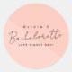 Autocollant Rond Classique Moderne Étiquette Personnalisée Nom de la Mariée Enterrement de Vie de Jeune Fille Rose..