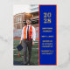 Nos annonces de graduation design moderne orangé et bleu feuille comprennent une mise en page de classe saisissante année et photo verticale. Personnaliser avec nom et école.