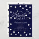 Moderne, invitations de partie de retraite de parties scintillantes de marine. Arrangez dans vos années d'or avec cette invitation classique et moderne de partie de retraite. Créé avec les accents argentés de parties scintillantes, cette invitation de retraite avec l'éclat dans des vos mains d'invité lors de le recevoir. Les approvisionnements coordonnés de partie sont disponibles en magasin de MetroEvents sur Zazzle. Les invitations supplémentaires de partie de retraite sont disponibles chez Metro-events.com.