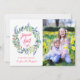Carte moderne avec photo. La carte une couronne de fleurs peintes à l'aquarelle et place pour le texte et une photo.