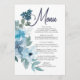Moderne Pastel Blue Aquarelle Rose Menu Mariage