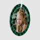 La conception d'ornement photo pour les fêtes comprend votre image préférée avec du texte d'année en blanc (pouvant être personnalisé) avec un motif à carreaux de style buffalo vert émeraude et noir au dos. Personnalisez le nom de monogramme personnalisé «Merry and Bright» et le texte de l'année au dos ou supprimez-le. Conseil photo: recadrez la photo au format carré avant de la télécharger dans le modèle de conception.