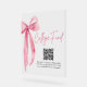 🎀 🎓 Moderne Pink Bow QR Code College Fonds de Graduation Signer 🎓 🎀 Faites en sorte que les invités fêtent et soutiennent le diplômé avec ce Modern Pink Bow QR Code College Fonds de Graduation Signer! Doté d'un arc rose chic et d'une typographie élégante, ce panneau est un moyen pratique pour les amis et la famille de contribuer via un code QR personnalisé. Parfait pour l'exposition lors de votre remise de diplômes, ce design élégant et coquette ajoute une touche féminine et moderne à votre célébration spéciale ! 💕 ✨