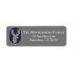 Tête de cerf gris rustique moderne et étiquettes de adresse de sauterelles bleu marine. L'arrière - plan est gris moyen.