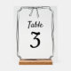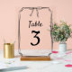 Ce numéro de table élégant, écrit à la main, présente une conception classique dessinée à la main avec une illustration de l'arc en blanc en haut. Il est présenté dans une palette de couleurs noir et blanc classique, parfait pour donner le ton d'une célébration moderne et formelle.