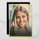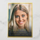Il s'agit d'une faire-part moderne et élégante de graduation au lycée en papier d'or réel, avec une police simple mais classique, ainsi qu'une seule photo minimaliste sur le devant avec une élégante bordure en or. L'envers comprend un message que vous pouvez personnaliser, ainsi qu'une autre photo. Veuillez contacter le concepteur pour toute question relative à ce design.