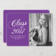 Annoncez votre diplôme d'études secondaires ou collégiales avec un faire-part chic et moderne violet. Avec une police de calligraphie élégante, cette faire-part de graduation est sûr de "wow" votre famille et vos amis. Pour modifier le style de police, utilisez le bouton "Personnaliser".