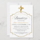 Moderno Blanco Bautismo de Niños Con Cruz Dorada Invitation