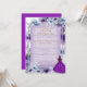La invitación moderna de Mis Quince Años Quinceañera presenta flores azules y moradas y una tiara dorada.