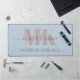 This modern desk mat features a mocha mousse monogram, name and profession in dark grey over a dusty blue field. Designed for a clean and sophisticated workspace it blends classic minimalism with chic details. A thoughtful gift for remote workers, designers or anyone who wants a stylish desk upgrade.