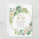 Cette belle modification de l'invitation date dispose d'une belle aquarelle verte, fleurs blanches, et une couronne d'or. Si élégant et joli ! Des articles de fête correspondants sont également disponibles. © Mini Moi Prints